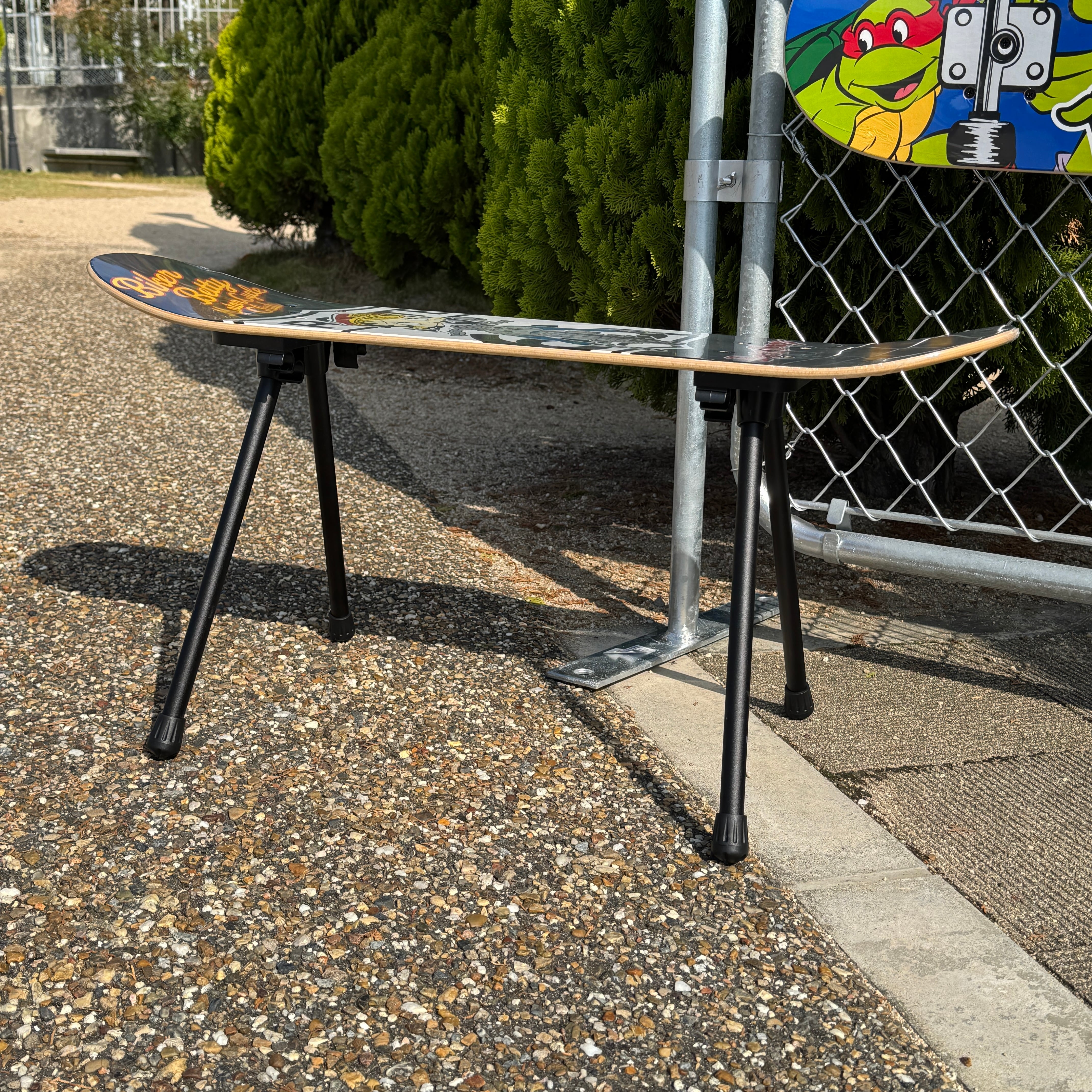 スケートボードデッキを座面にした、組み立て式チェア。