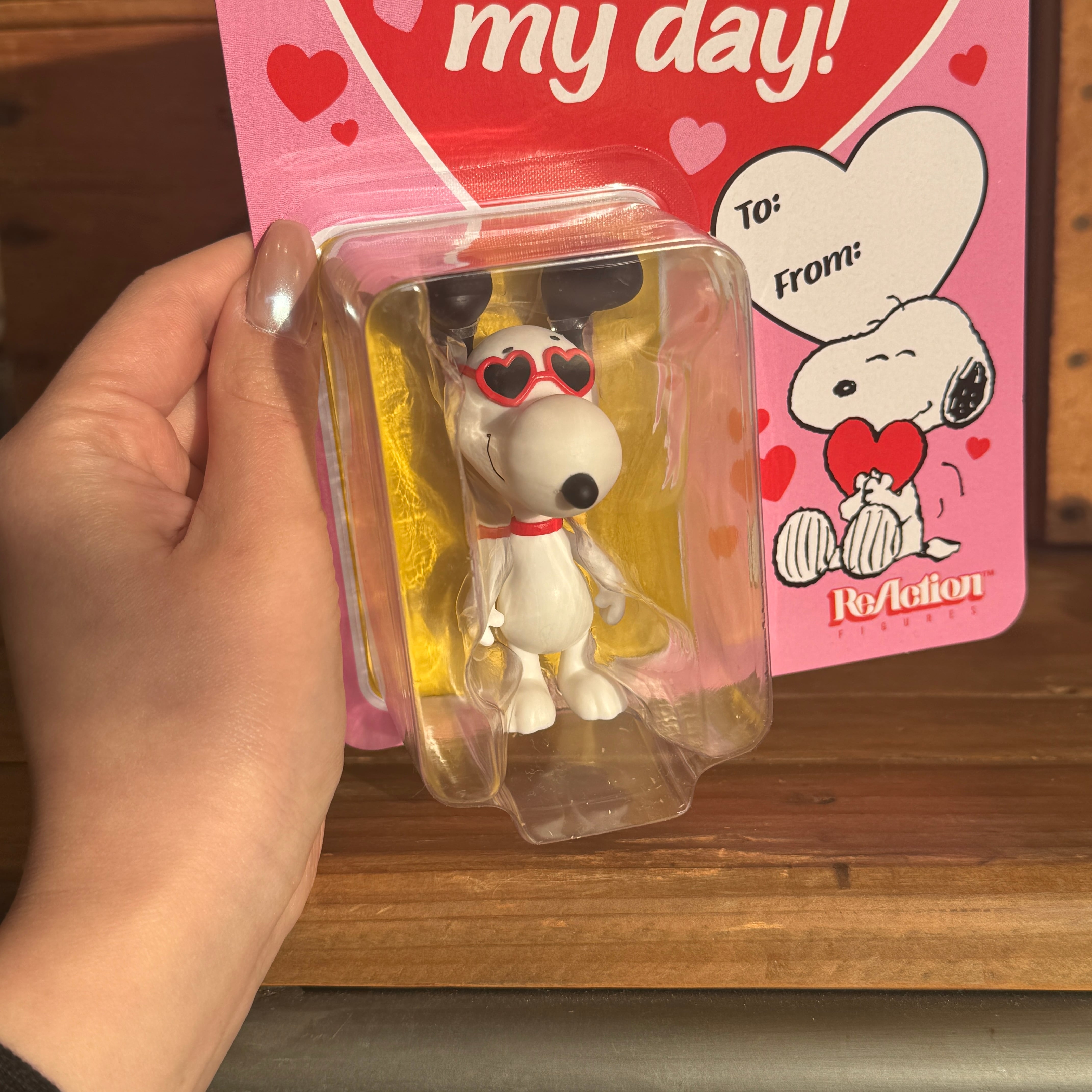 ハート型のサングラスをかけたスヌーピーのリアクションフィギュア!