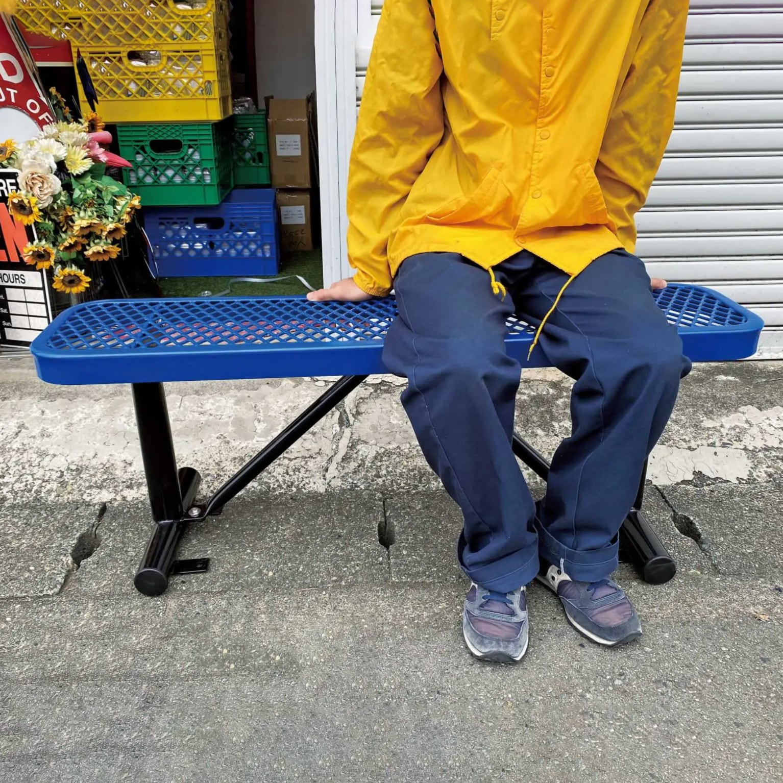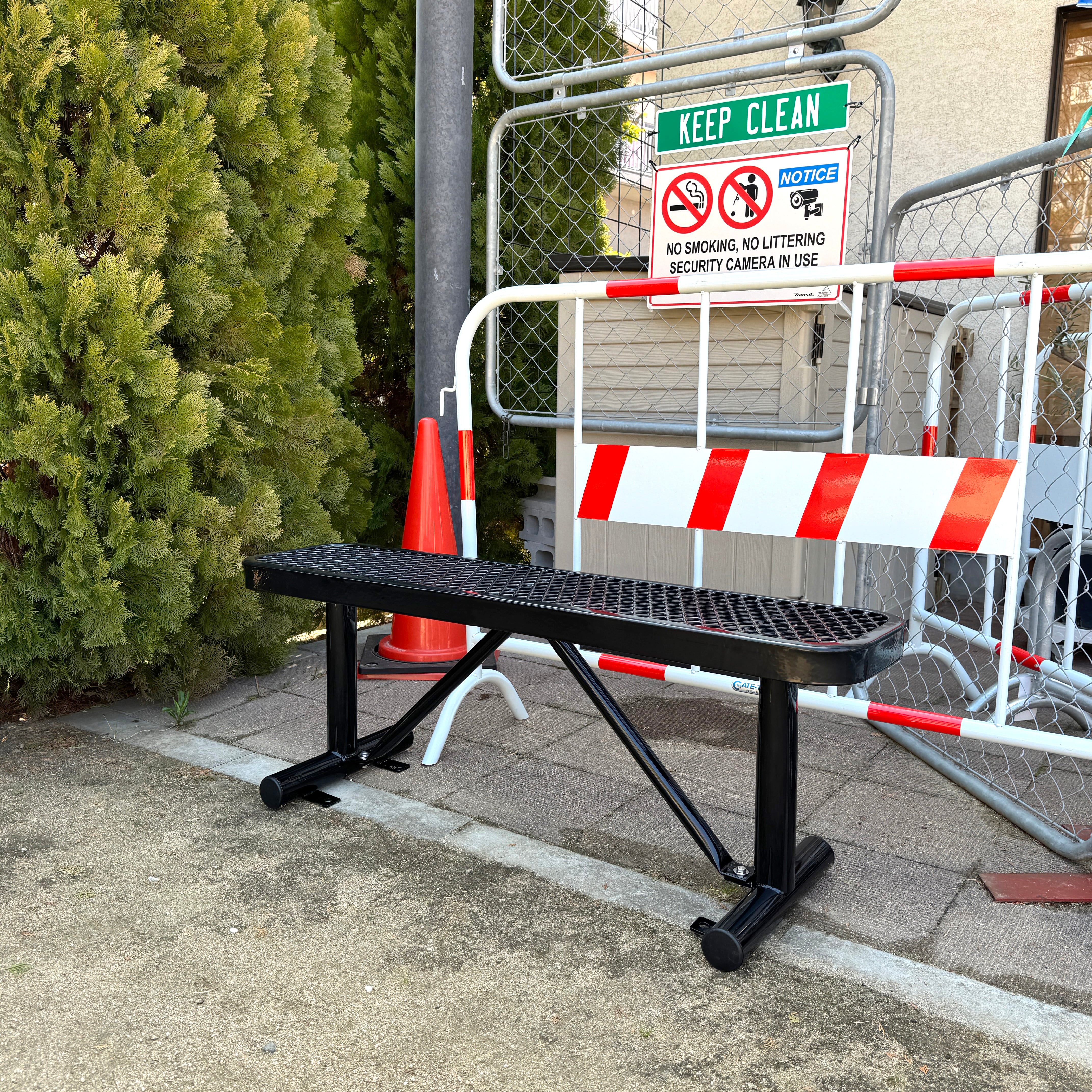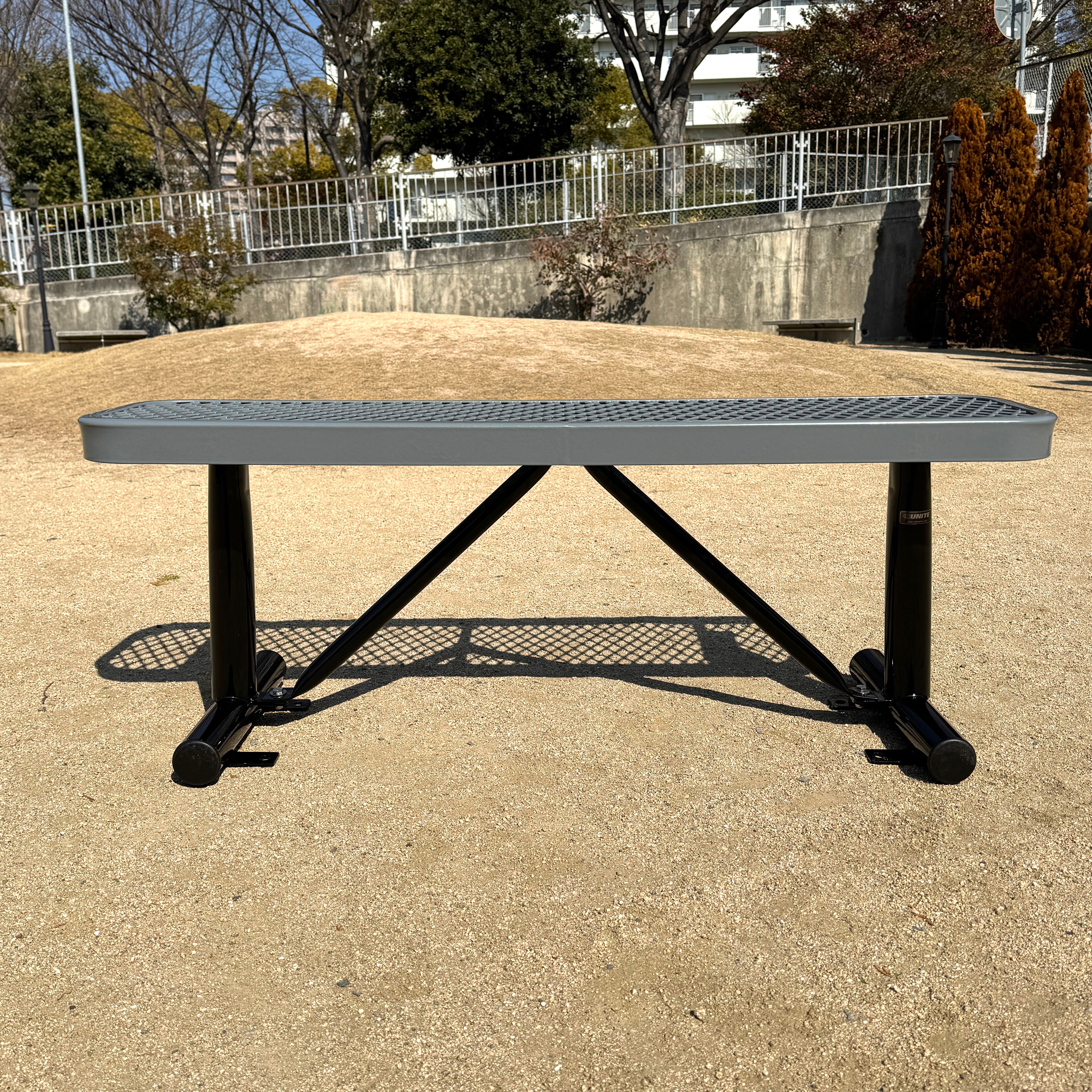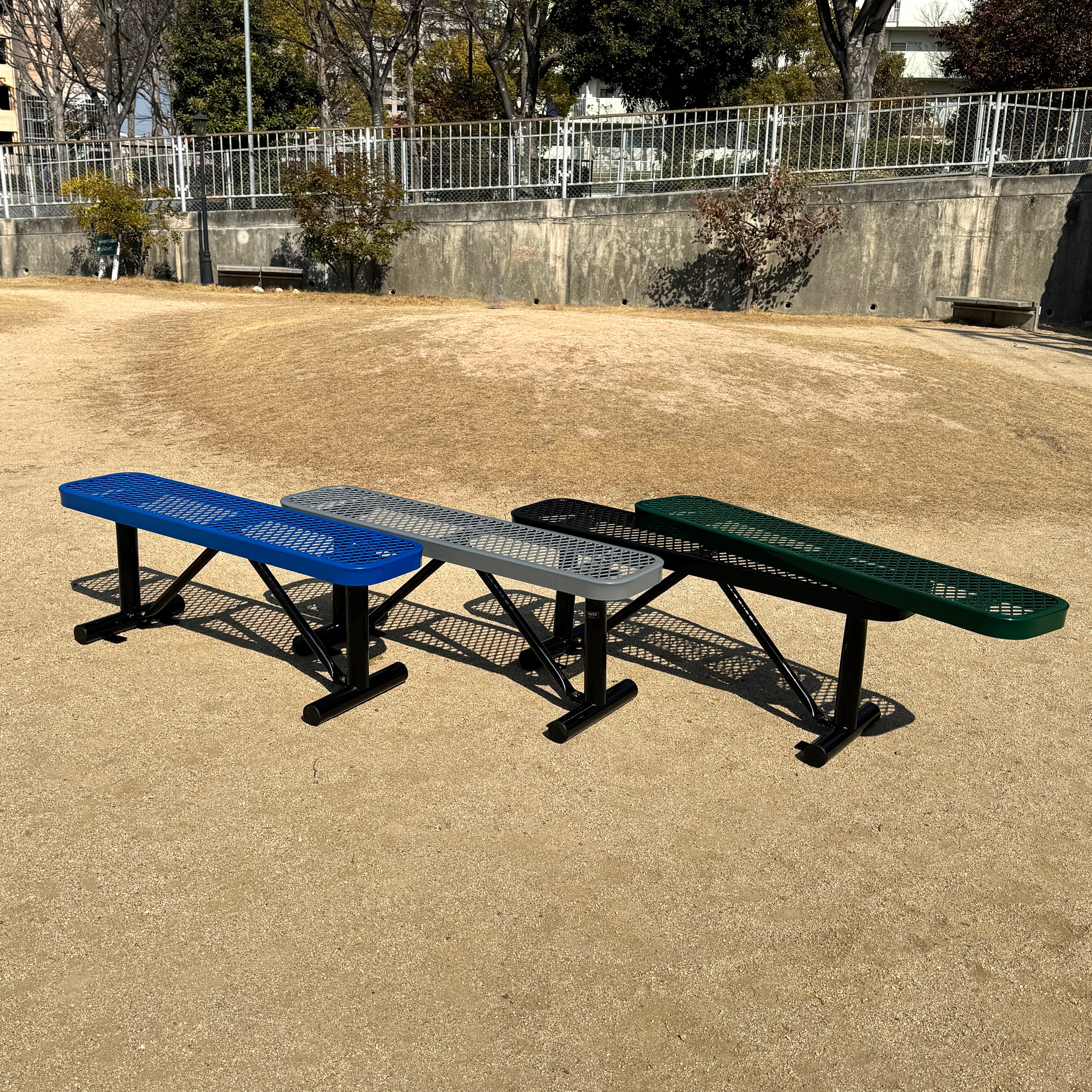 アメリカやカナダの公園、バス停などの公共施設で使用されている屋外対応のスチール製ベンチ。