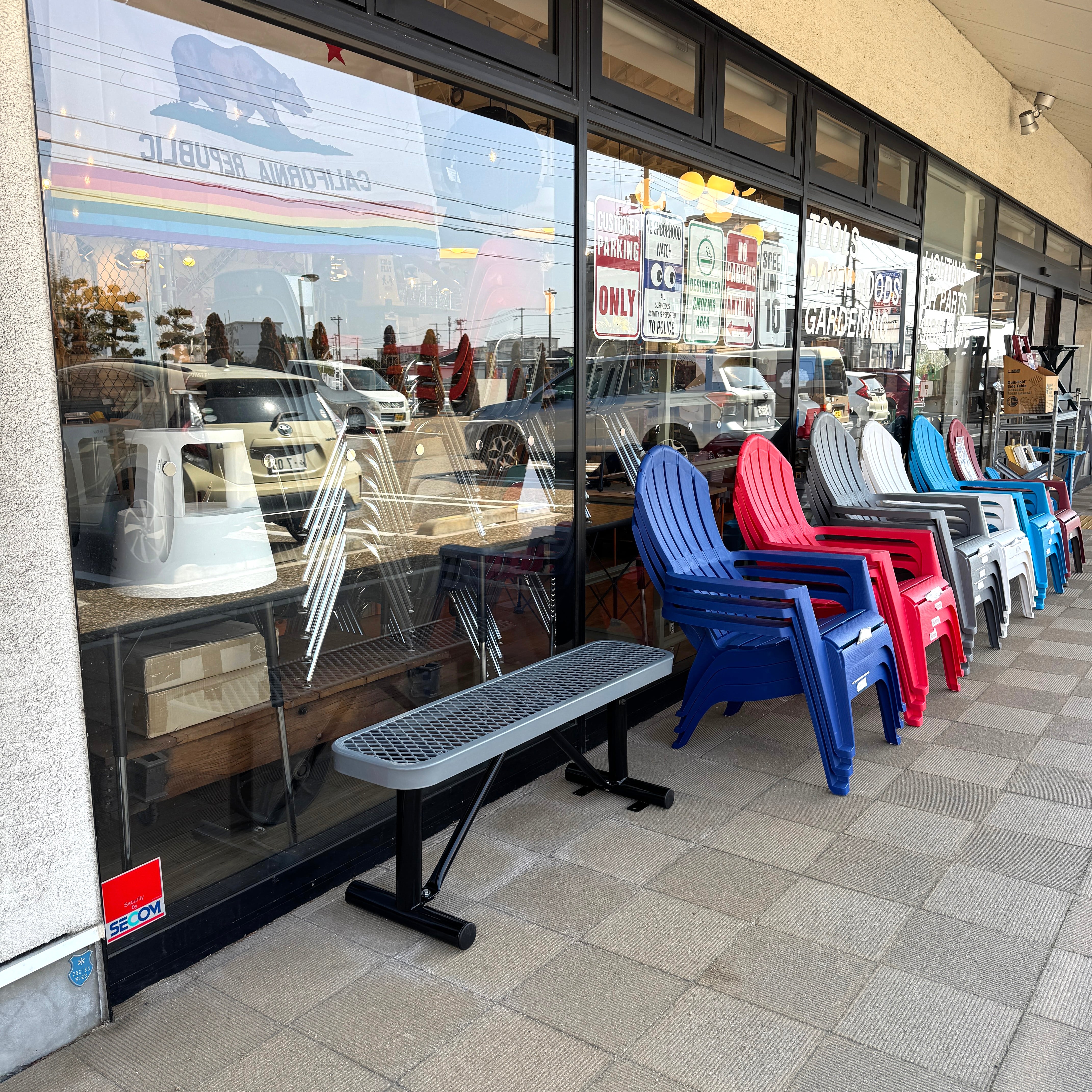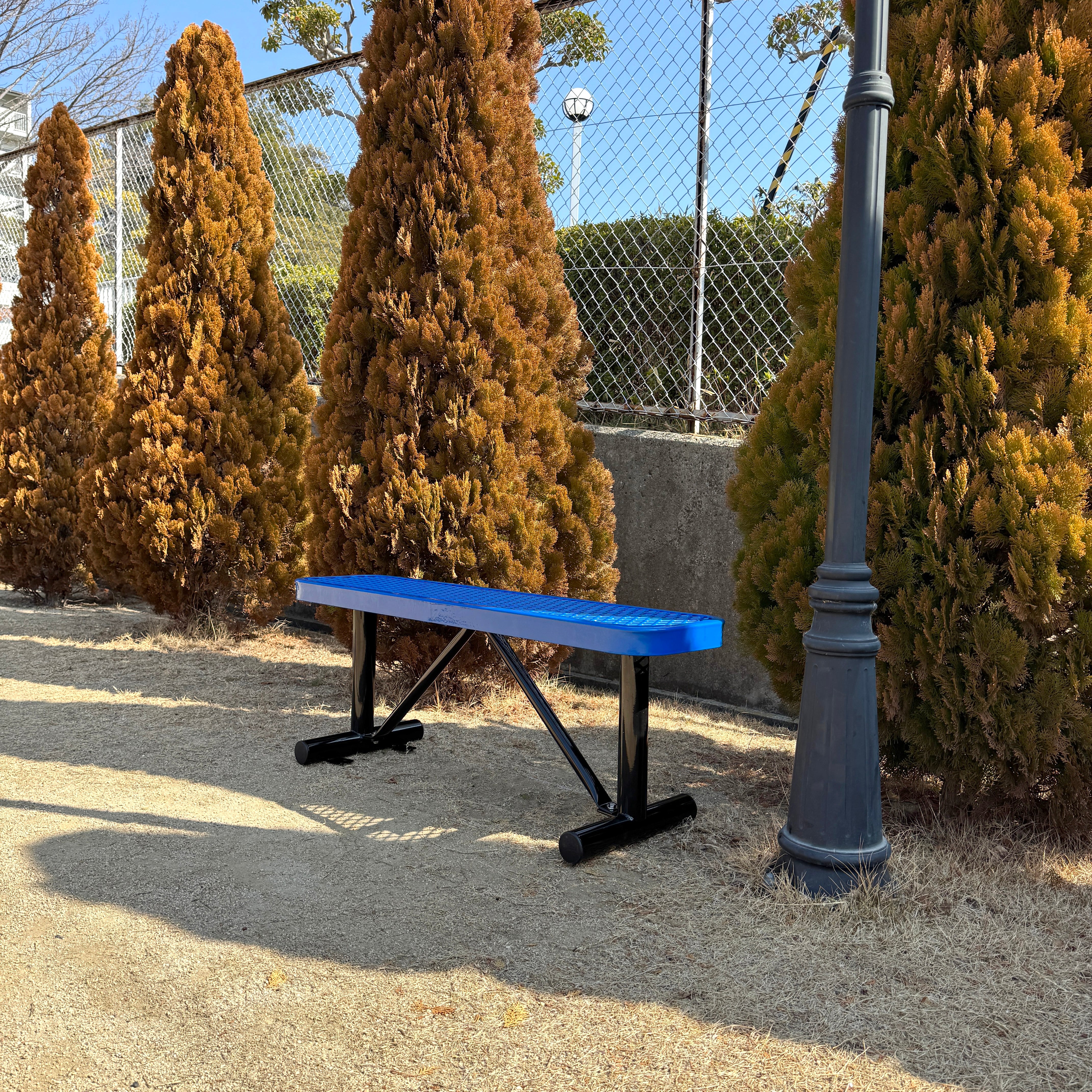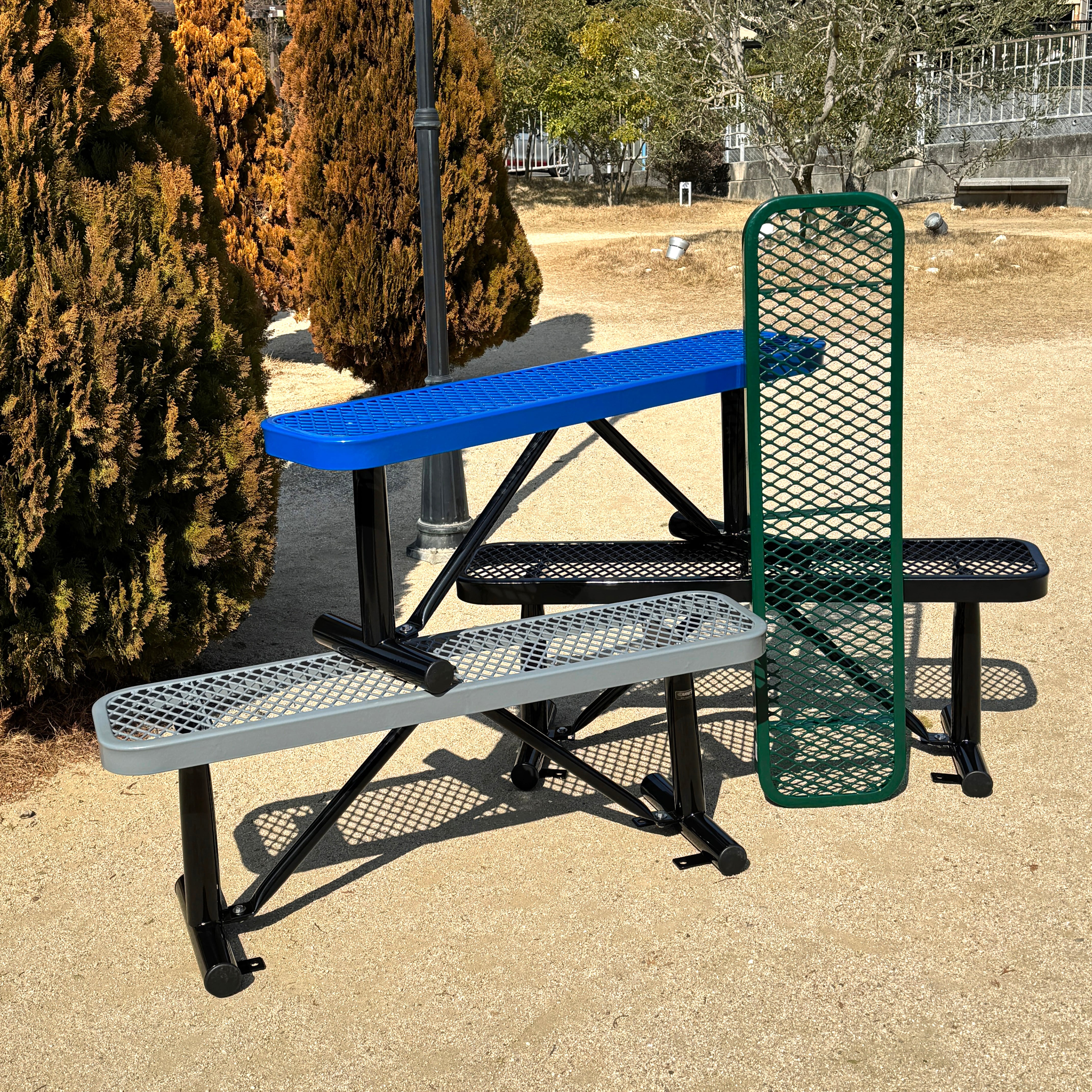アメリカやカナダの公園、バス停などの公共施設で使用されている屋外対応のスチール製ベンチ。
