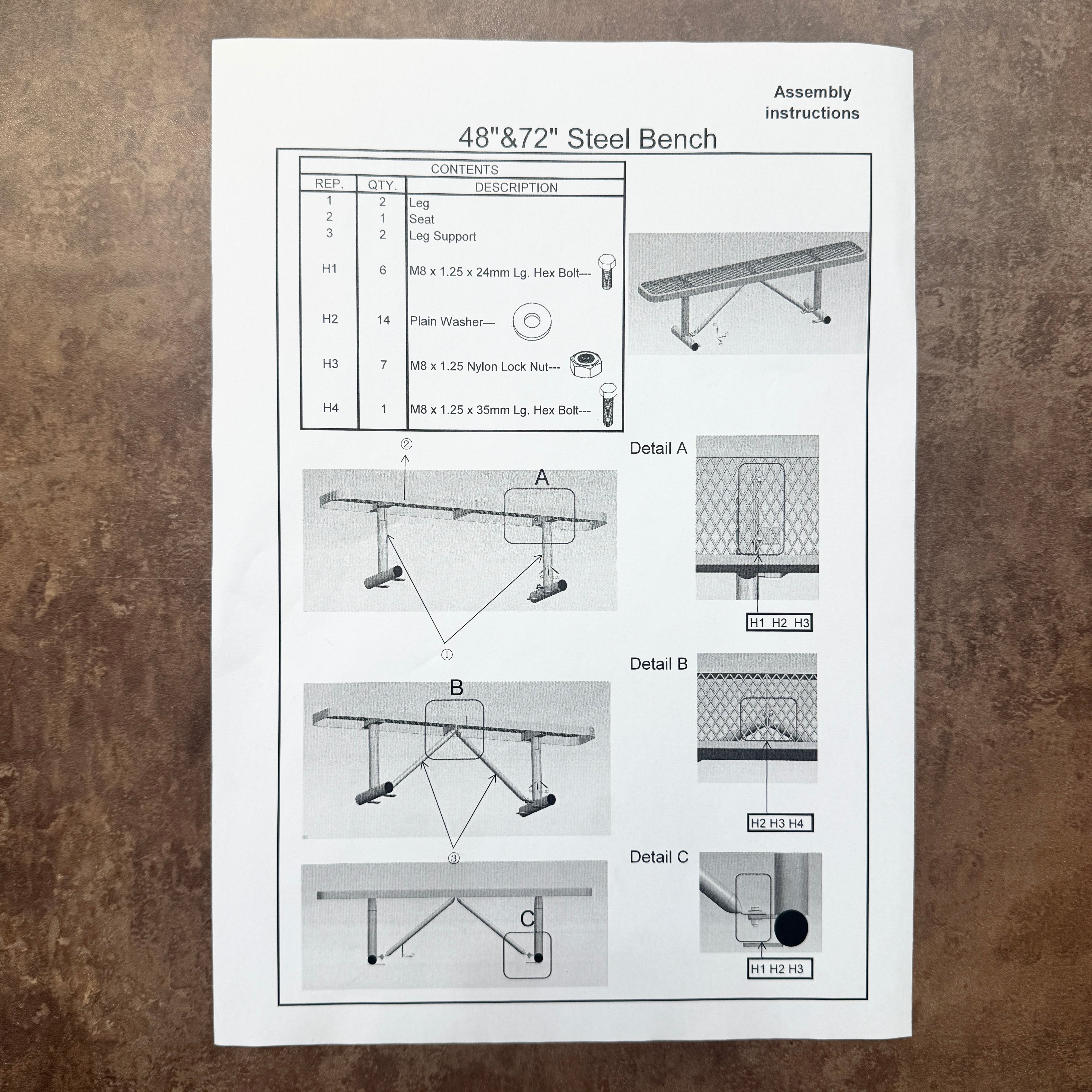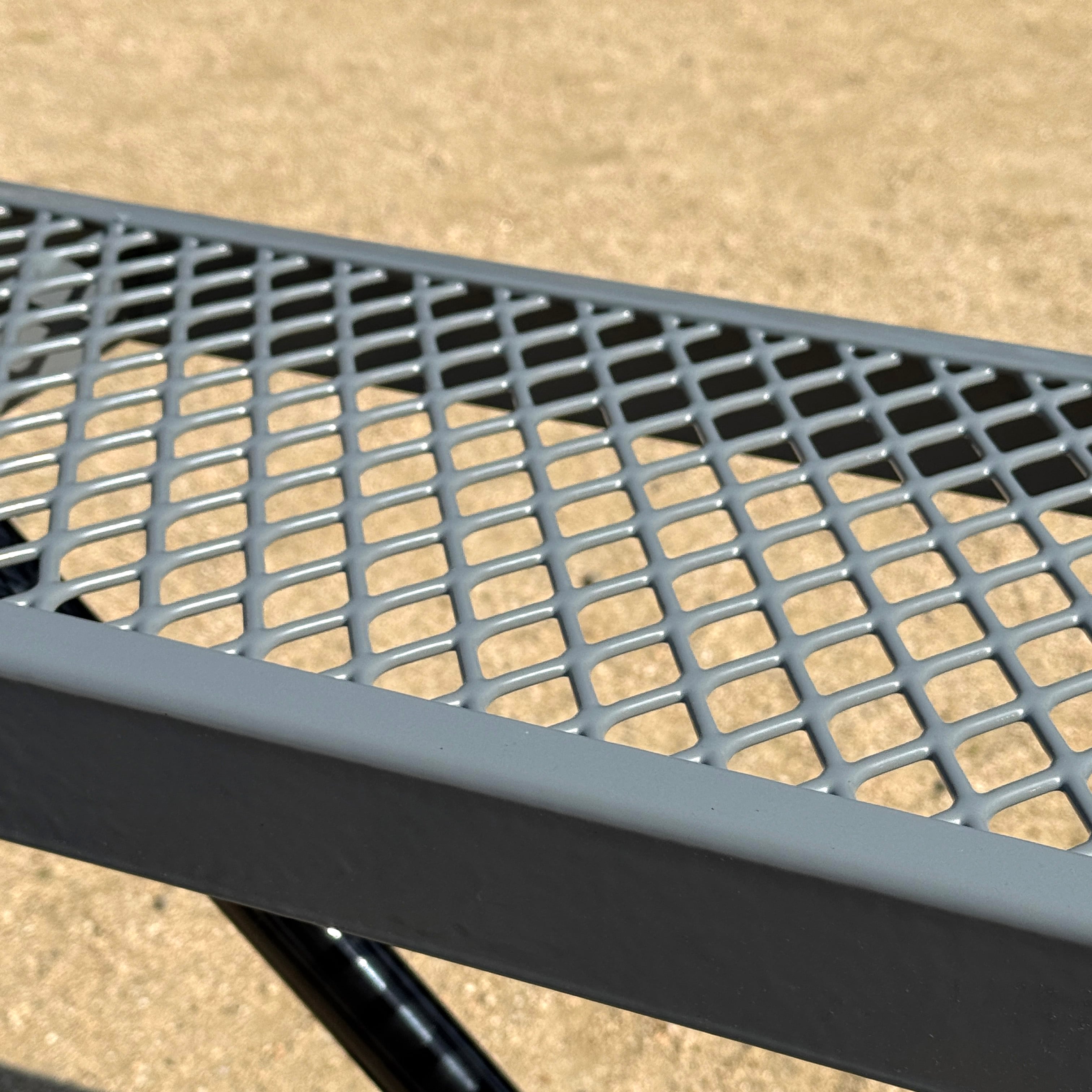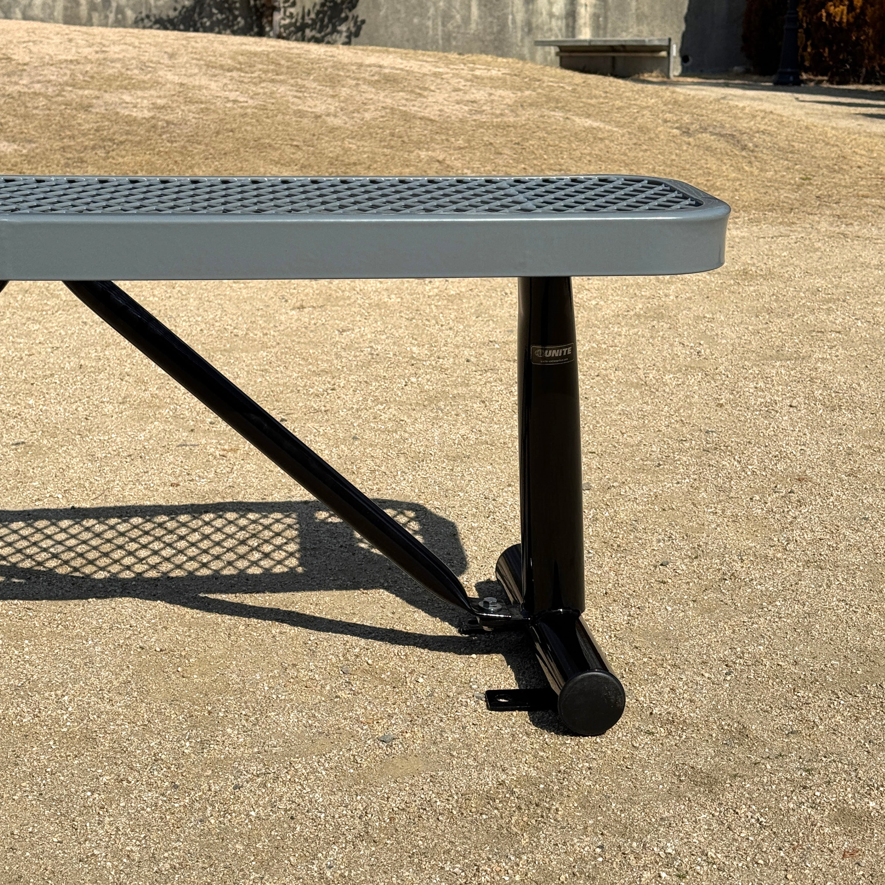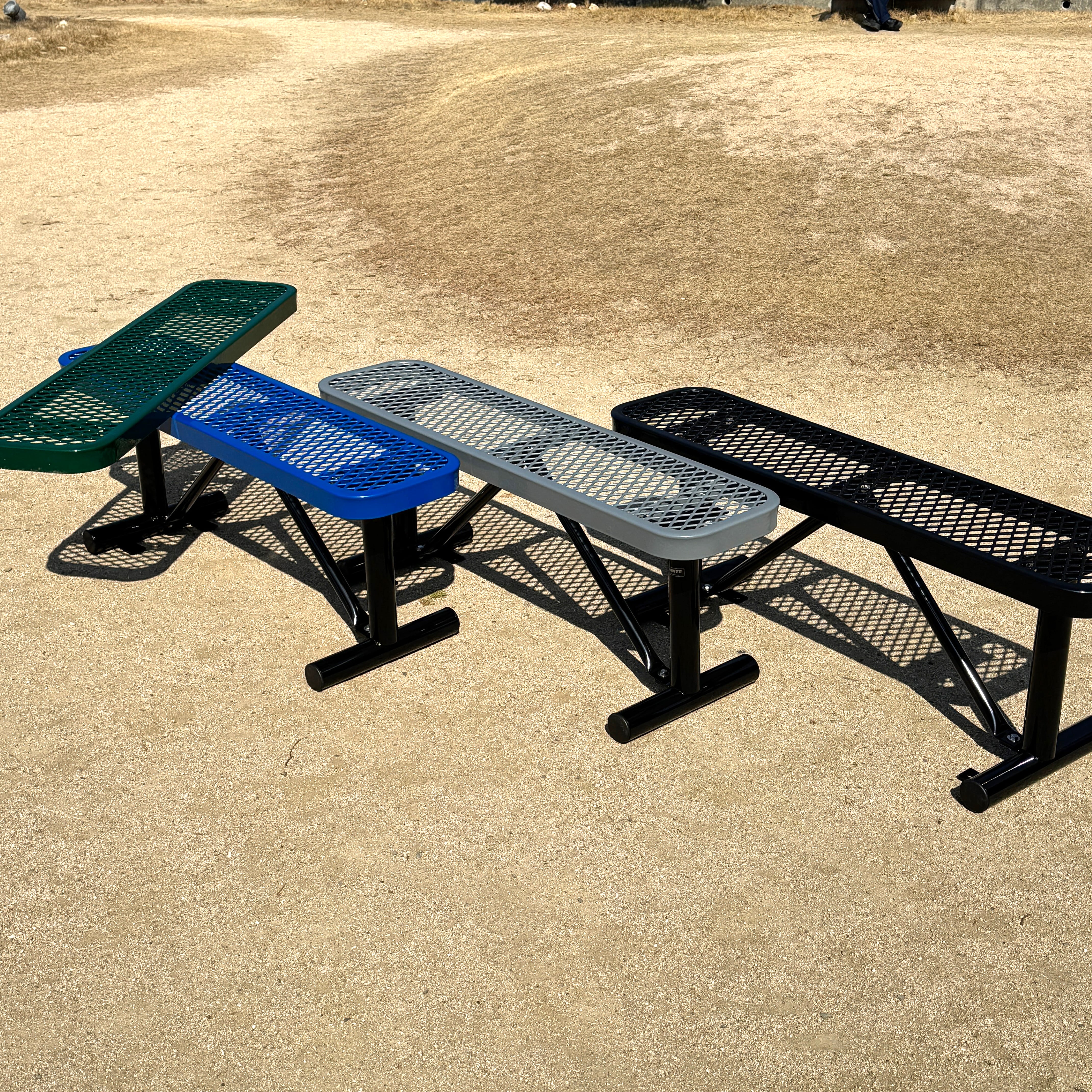 アメリカやカナダの公園、バス停などの公共施設で使用されている屋外対応のスチール製ベンチ。