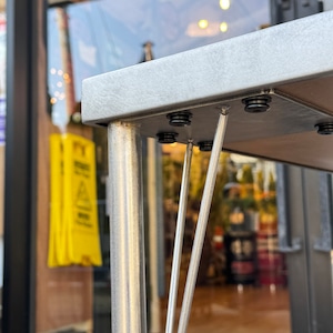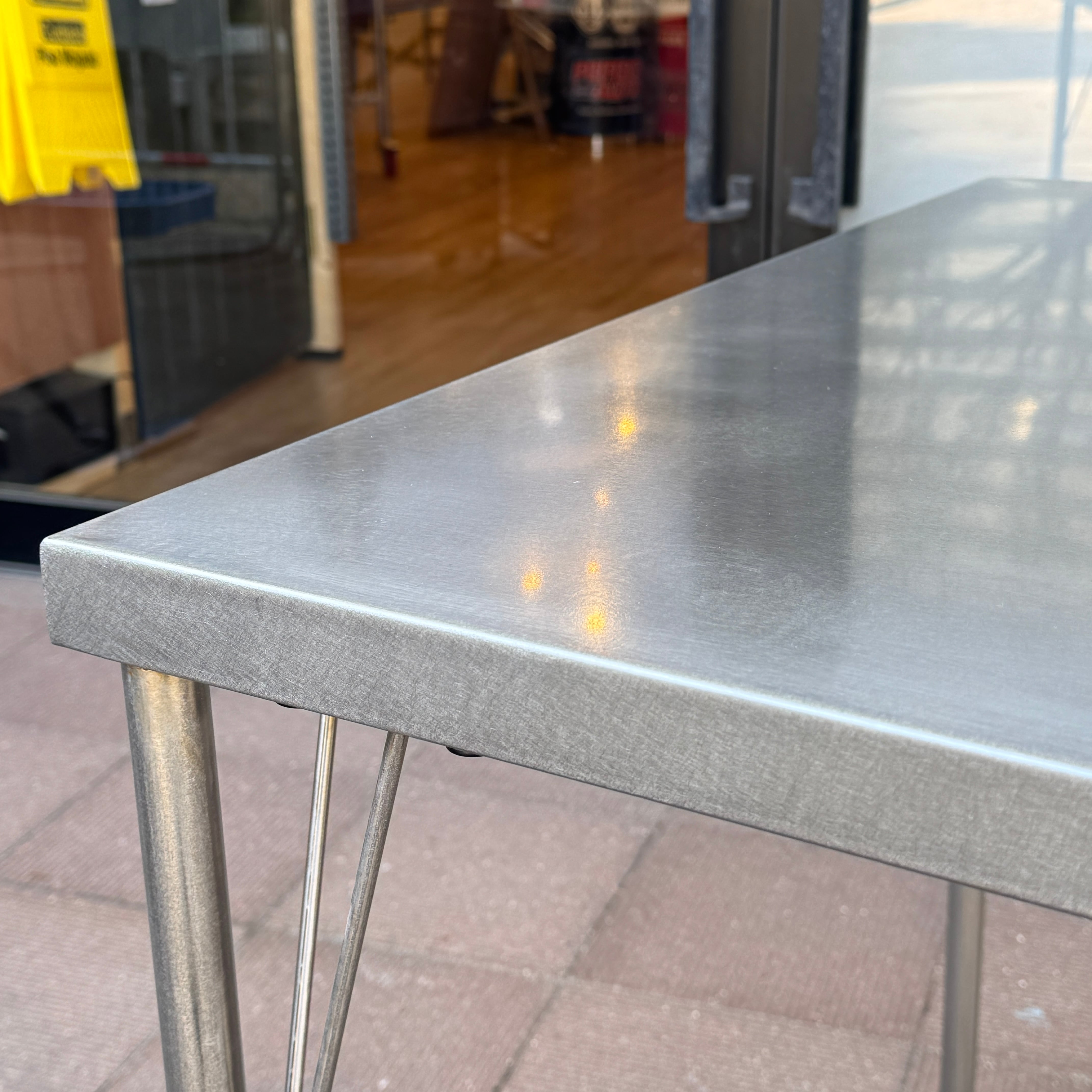 天板から脚部まで すべてステンレスで統一されており、装飾を削ぎ落としたシンプルなフォルムが、素材そのものの美しさを引き立てます。